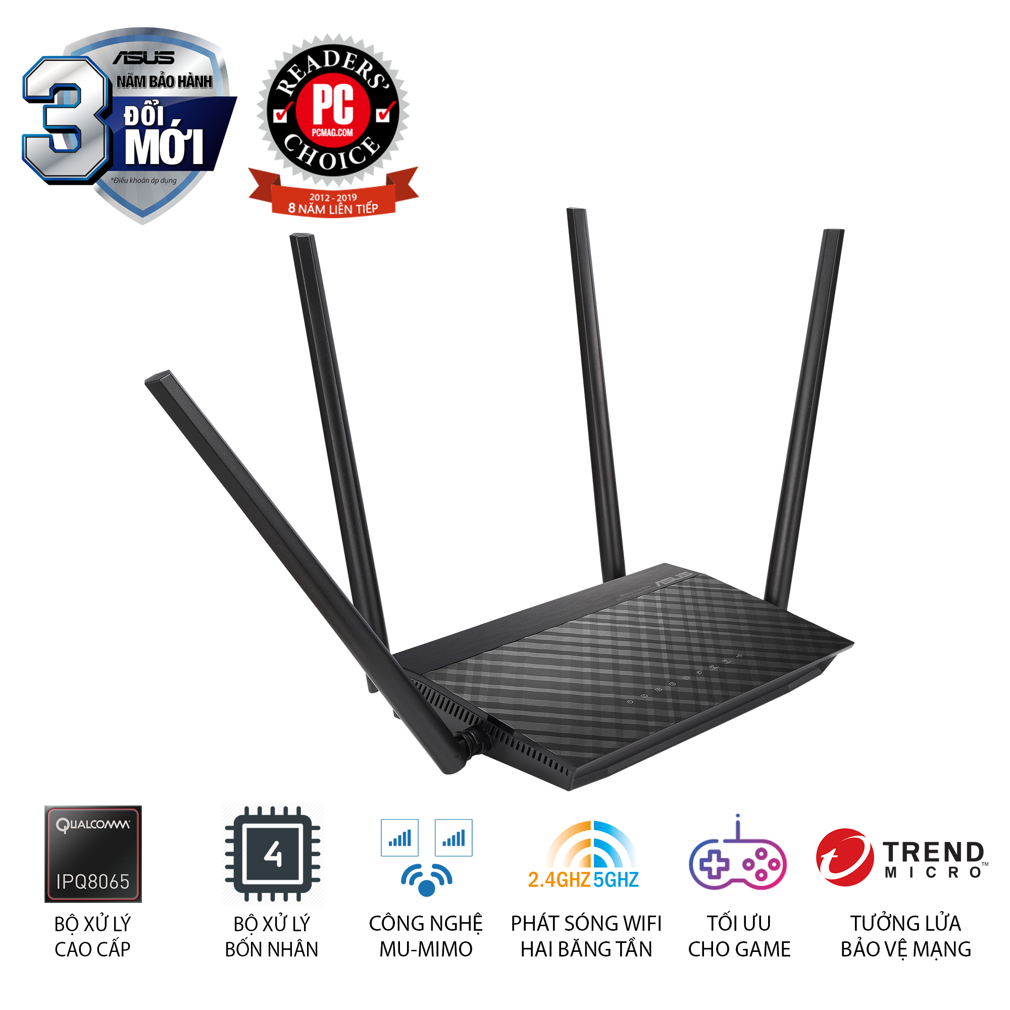 Bộ định tuyến không dây gigabit công suất cao ASUS RT-AC1500UHP cho hiệu suất và phạm vi phủ sóng vượt trội. Với ASUSWRT UI, bạn có thể nhanh chóng cài đặt mạng, tùy biến truy cập của người dùng và theo dõi cường độ tín hiệu. Bốn ăng ten hiệu suất cao bên ngoài trên RT-AC1500UHP cải tiến phạm vi Wi-Fi và hiệu năng đa thiết bị trong nhà của bạn.