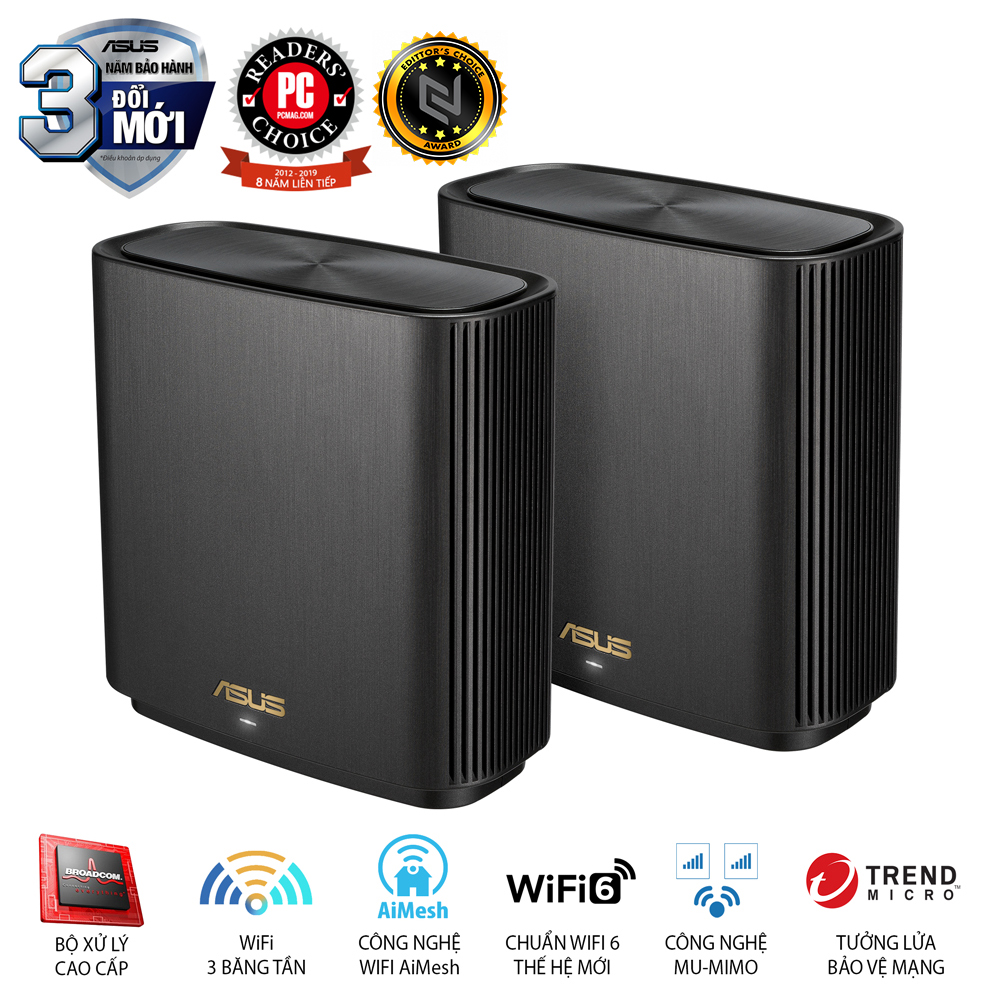 Hệ thống ZenWiFi AX bao gồm một cặp router ASUS AX6600 WiFi 6 với các công nghệ độc đáo mang đến các kết nối WiFi cực nhanh, đáng tin cậy và an toàn - bên trong hoặc bên ngoài ngôi nhà của bạn!