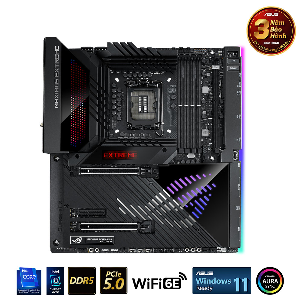 Là mainboard mới nhất được dành cho Intel Gen 13, ASUS ROG MAXIMUS Z790 EXTREME chắc chắn sẽ sở hữu cho mình socket LGA 1700 mới nhất hiện nay. Biến đây sẽ là một sự nâng cấp rõ rệt về hiệu năng và sức mạnh cho toàn bộ dàn PC Gaming của bạn. Với socket này, bạn vẫn có thể trang bị những thế hệ CPU tiền nhiệm là Intel Gen 12, Pentium Gold và Celeron.