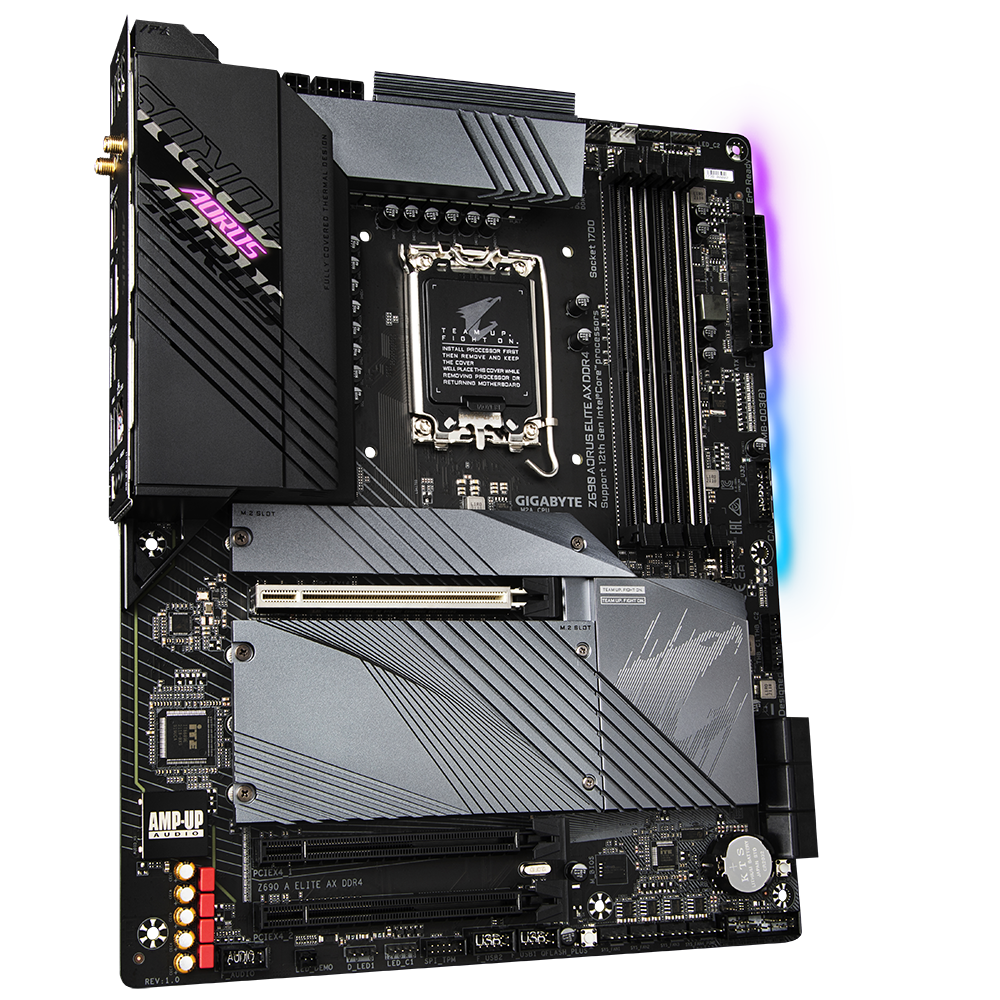 - Gigabyte Z690 AORUS ELITE AX sở hữu hệ thống chân cắm ARGB cho phép chủ nhân điều khiển đến từng bóng LED của bất kỳ thiết bị kết nối nào có hỗ trợ qua phần mềm RGB Fusion