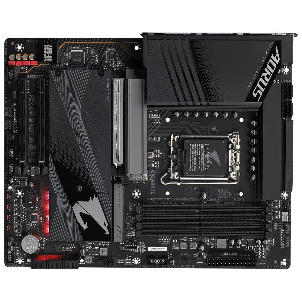Bo mạch chủ chơi game dòng AORUS Z790 tối ưu hóa hoàn toàn hiệu suất trong bộ vi xử lý Intel® thế hệ thứ 13 mới nhất với thiết kế năng lượng kỹ thuật số có khả năng nhất từ trước đến nay của chúng tôi. Trước khi bạn nhận thấy, nhiệt tạo ra từ việc tiêu thụ điện của con thú đã được xử lý bằng giải pháp nhiệt kim loại hoàn toàn. Chưa kể đến tốc độ nhanh như chớp với PCIe 5.0 thế hệ tiếp theo và khả năng tương thích hàng đầu của bộ nhớ DDR5. Lên ngôi vua của trò chơi.