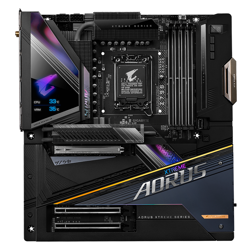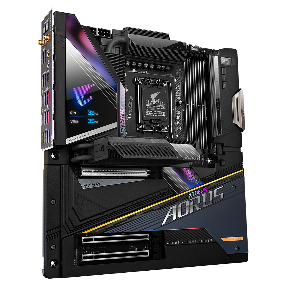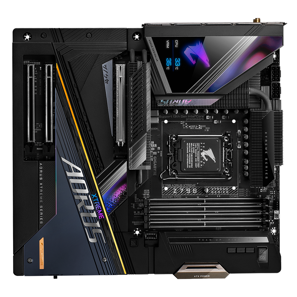 Bo mạch chủ chơi game dòng AORUS Z790 XTREME tối ưu hóa hoàn toàn hiệu suất trong bộ vi xử lý Intel® thế hệ thứ 13 mới nhất với thiết kế năng lượng kỹ thuật số có khả năng nhất từ trước đến nay của chúng tôi. Trước khi bạn nhận thấy, nhiệt tạo ra từ việc tiêu thụ điện của con thú đã được xử lý bằng giải pháp nhiệt kim loại hoàn toàn. Chưa kể đến tốc độ nhanh như chớp với PCIe 5.0 thế hệ tiếp theo và khả năng tương thích hàng đầu của bộ nhớ DDR5. Lên ngôi vua của trò chơi.