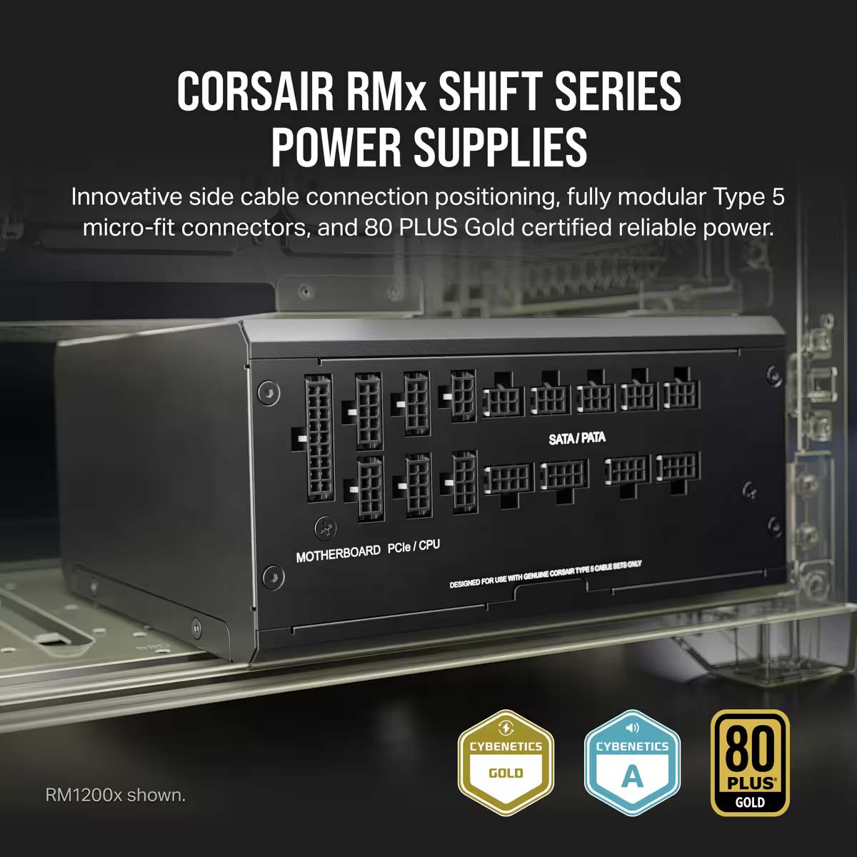Nguồn CORSAIR RM1000X SHIFT 80 PLUS 1000W GOLD FULL MODUL là PSU – Nguồn máy tính có công suất định mức lên đến 1000W, hỗ trợ máy tính hoạt động mạnh hơn và hoàn toàn không gây quá tải.