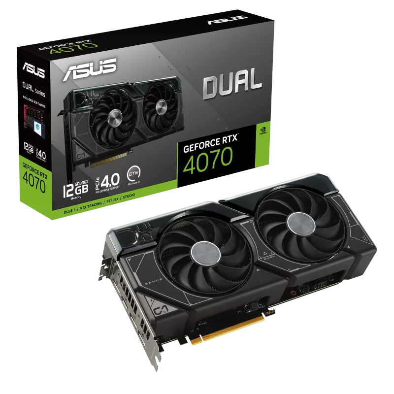 Tất cả được ghép nối với lối thiết kế 2-slot giúp cho mọi chi tiết góp phần vào công dụng tản nhiệt trên ASUS Dual GeForce RTX™ 4070 12GB GDDR6X được kết nối và phối hợp hài hòa với nhau. Tận dụng mọi khả năng đóng góp vào hoạt động chung của chiếc VGA.